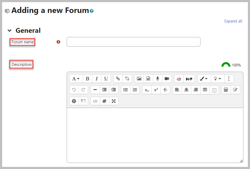 - Begin by giving your forum a name, and in the description area you can provide the instructions for your forum. Here you will provide an overview of what you want your students to discuss, as well as any guidelines, such as a word count or how many times you want the students to reply.