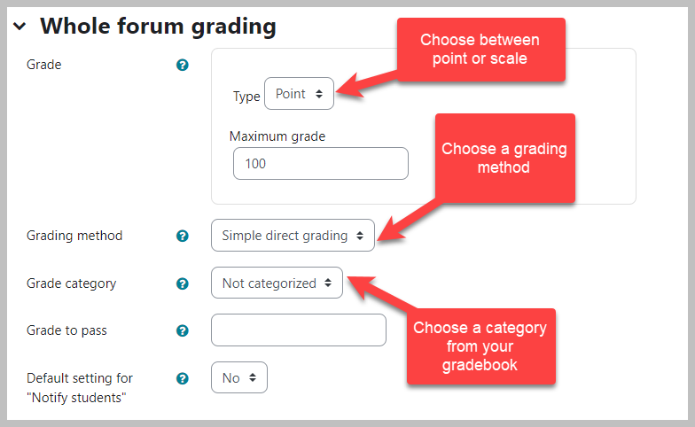- The Whole Forum Grading section allows you to choose...