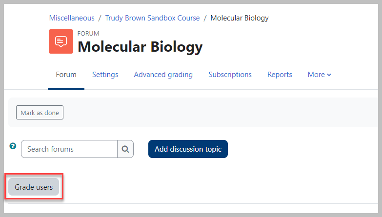 - To grade a forum, enter the forum you would like to grade and click "Grade Users".