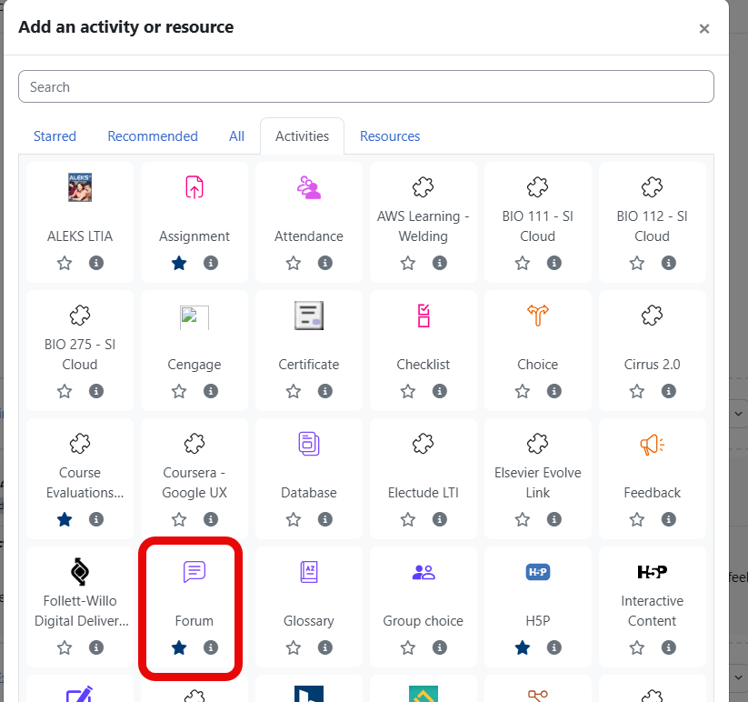 - From the activity chooser, select "Forum."