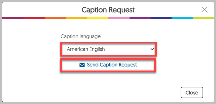 Use the pop-up window to select the language for captions and select “Send Caption Request”.