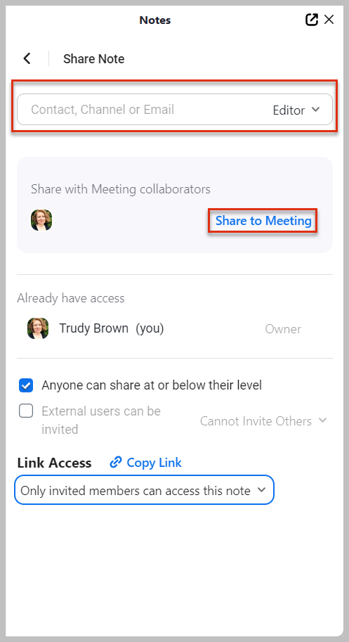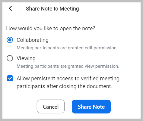 Note: You will need to have your Zoom updated to 5.15.10 or higher to use Notes in Zoom and everyone in the meeting will need to be updated to see the notes.
