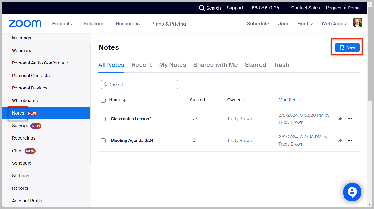 Click “Notes” in the menu on the left side of the screen. This will open the page where all of your notes are stored whether created before the meeting or during the meeting.