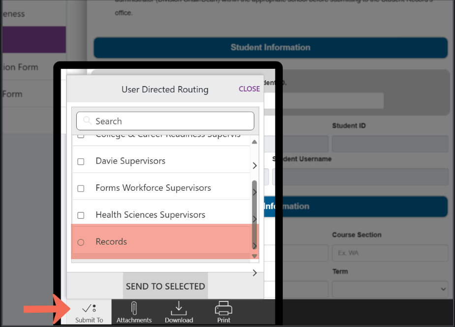 - Select Grade Change Form located under Records. You can also search for the form by typing RO-Grade Change Form into the search bar.