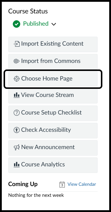 - Click on "Choose Home Page" from the menu on the right side of the screen.