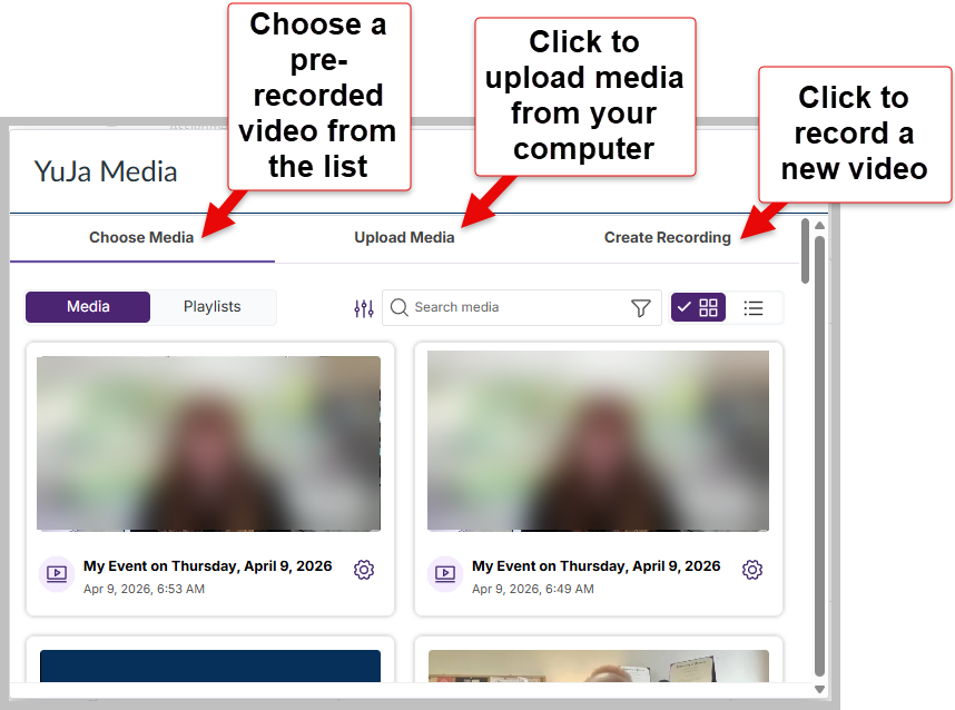 YuJa Media Chooser